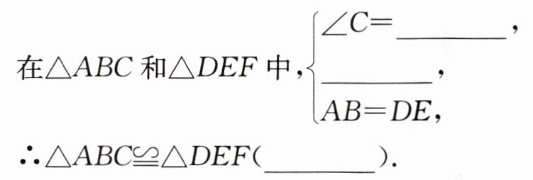 答案:∠F ∠A=∠D或∠B=∠E AAS