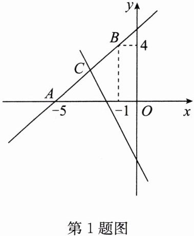1. 如图,直线 $ y =  kx + b $ 经过点 $ A(-5,0) $,$ B(-1,4) $。