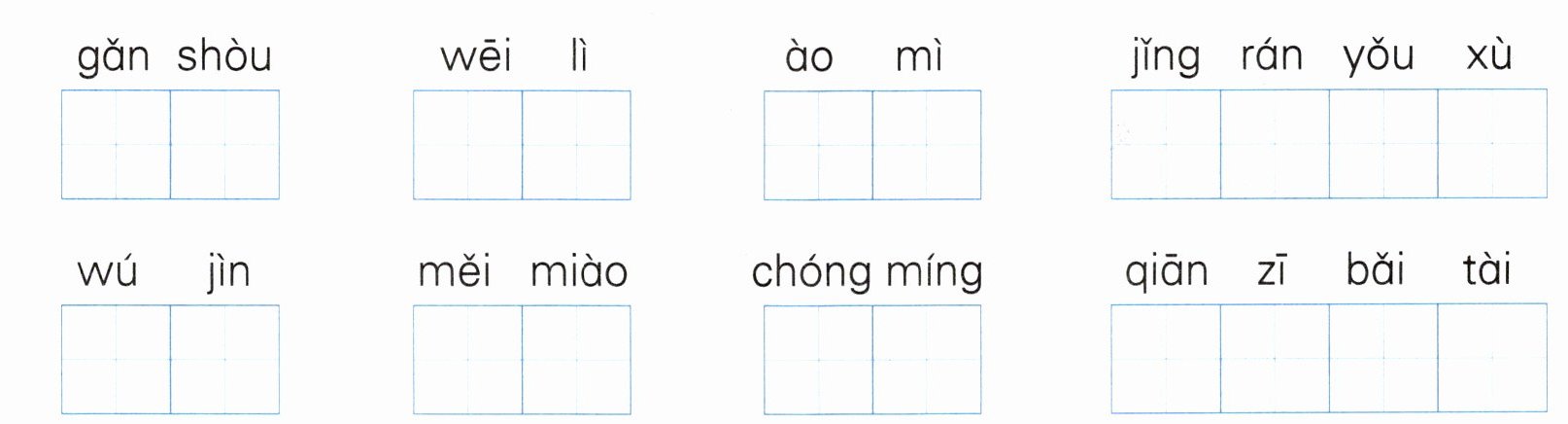答案:感受 威力 奥秘 井然有序 无尽 美妙 虫鸣 千姿百态