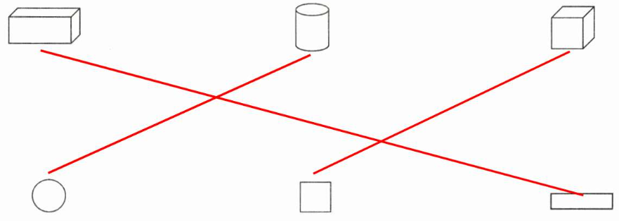 2. 从上面看下面三个物体,将看到的图形与物体连一连。
