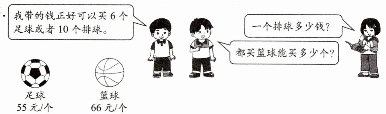 55 6 33 10 66 5 6×55÷10=33(元) 6×55÷66=5(个)