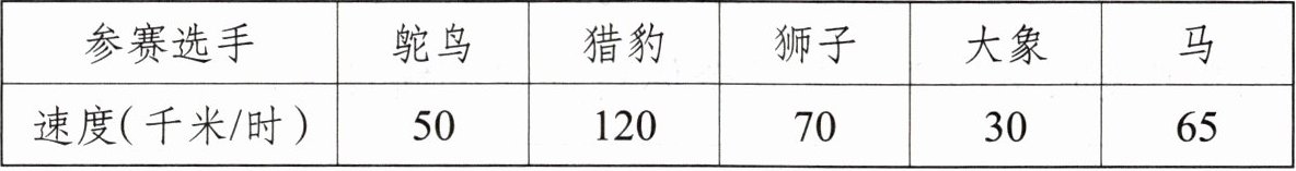 3. 动物城要举办赛跑活动。下面是几位参赛选手的奔跑速度的统计表。