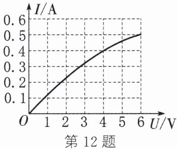 12. 标有“6 V 3 W”的小灯泡,它的$I-U$图像如图所示,则它正常工作 10 s 消耗的电能为