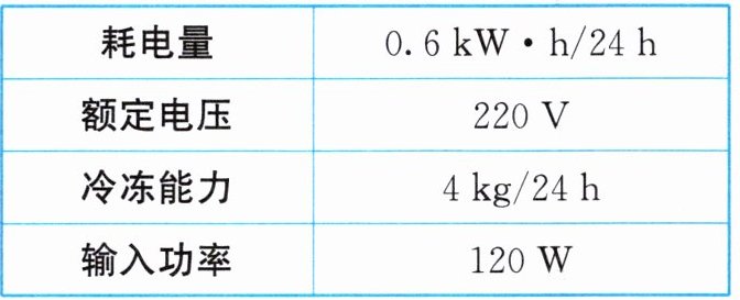 11. 小李家的电冰箱铭牌如表所示,观察冰箱从启动到停止工作用了 6 min,则该冰箱启动 1 次耗电