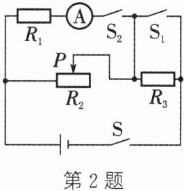 (3) 解:当闭合$S$,断开$S_{1}$、$S_{2}$时,$R_{3}$与$R_{2}$串联。