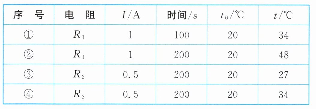 可知导体产生的热量与电流大小有关。实验中,电阻$R_2$产生的热量为