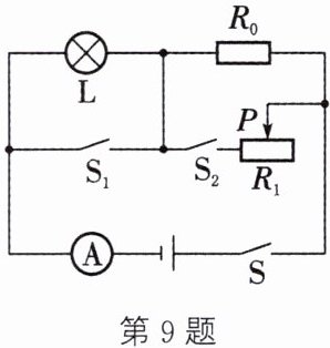 答案:9.(1)小灯泡的额定电流$ I_L=\frac{P_L}{U_L}=\frac{3W}{3V}=1A$