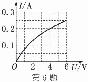 6. (2025·常州模拟)标有“$6 V \ \ 1.5 W$”的灯泡,通过它的电流随其两端电压变化的物理图像如图所示,若把这只灯泡与一个$20\Omega$的定值电阻串联起来,接在电压为$8 V$的电源两端。则下列说法中正确的是 (