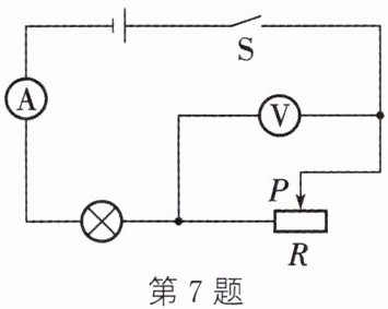 电压表示数$U_{R}=U-I_{max}R_{L}=4.5\ V-0.5\ A×4\ \Omega=2.5\ V$