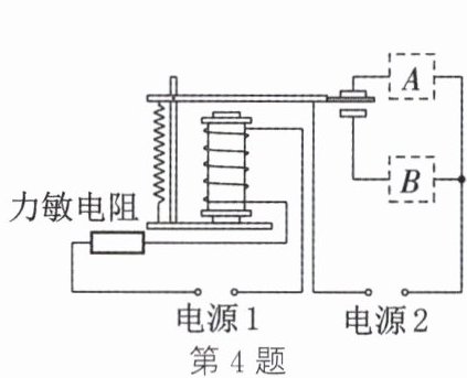 4. 小明发明了一种自动报警器,其电路图如图所示。当有人踩在力敏电阻上时,力敏电阻阻值减小,电磁铁磁性