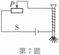 极;滑动变阻器的滑片$P$向左滑动,弹簧的长度