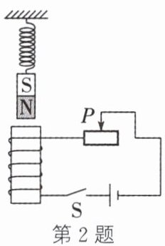 2. 如图所示,在电磁铁正上方用弹簧挂着一条形磁铁,当开关S闭合后,电磁铁上端是