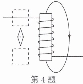 4. 如图所示,根据图中的磁感线方向,在虚线框内标出对应位置的电流方向和小磁针磁极的名称。