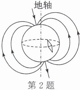 2. (2024·镇江丹阳二模)如图,小磁针静止在地球赤道正上方,请标出地磁 N 极和小磁针的 N 极。