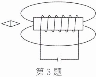 3. 如图所示,小磁针静止在通电螺线管左侧,请标出磁感线方向及小磁针的 N 极。