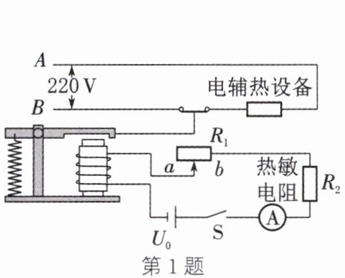 (3)若欲将大棚内设定的温度适当提高一些,则可将滑动变阻器$R_{1}$的滑片向