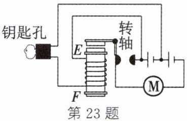 23. 如图所示为汽车启动原理图,汽车启动时,需将钥匙插入钥匙孔并旋转(相当于接通电路),下列有关说法错误的是 (