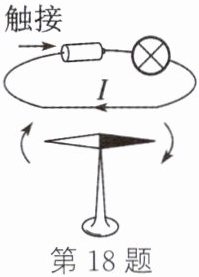 答案:18.通电导体周围存在磁场 通电导体周围的磁场方向与电流方向有关