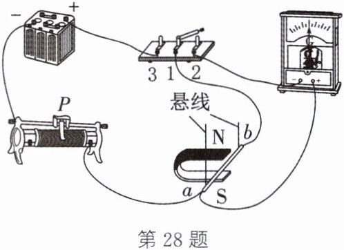 答案:28.(1)①3 电动机 ②右 强 (2)①不会 ②B ③导体ab