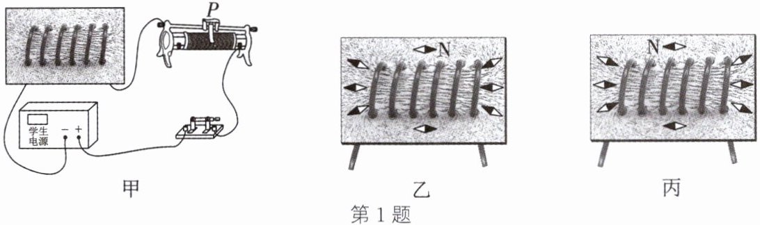 (2) 在玻璃板上均匀地撒满铁屑,将螺线管连入电路,闭合开关,轻敲玻璃板面,观察到铁屑分布情况如图甲所示,铁屑的分布情况与