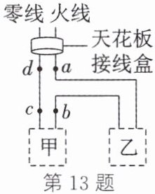 答案:13. 乙 $a、b$ $c、d$间存在断路