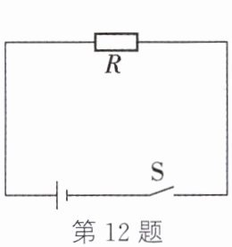 12. 如图所示为超市常用的塑料袋封口夹电路原理图,电源电压为5 V,电热丝R的阻值为1 Ω。闭合开关S,电热丝温度升高,利用电流的