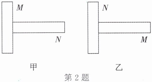2. 有外形相同的两根钢条$M、N$,按图甲、图乙两种方式接触时,它们之间都有较大吸引力,则下列推断正确的是 (