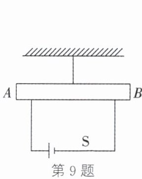 9. 将一个通电螺线管$AB$用单线悬挂起来,如图所示,闭合开关$S$,最后静止时$A$端指南、$B$端指北。画出螺线管上导线的绕法,并在螺线管两端标出$N、S$极。