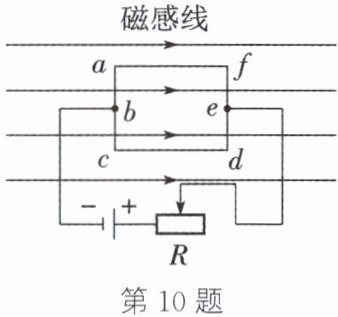 10. 矩形铜线框在某磁场中的位置如图所示,$ab、bc、ed$和$fe$段都受到该磁场的作用力,下列受到该磁场的作用力方向相同的两段是 (