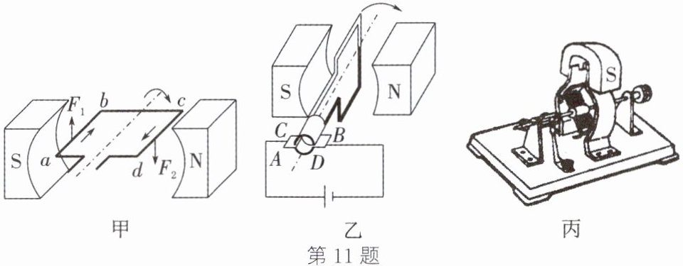 答案:11.(1)通电导体 电流方向相反 (2)是 换向器刚转过 (3)①C ②蹄形磁体