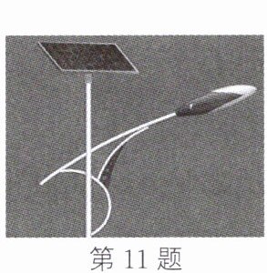 11. 如图所示为太阳能路灯,灯杆顶端是太阳能电池板,它能将太阳能转化为电能,并向灯杆下方的蓄电池充电,供夜晚路灯照明。蓄电池充电时将电能转化为