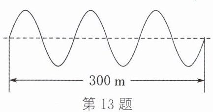 13. 如图所示为某电磁波在$1 × 10^{-6} s$内传播的波形,则该电磁波波长为
