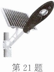 答案:21. (1) 太阳光照射8 h后,太阳能电池板获得的能量$ W_{总}=0.4×10^{6} J/h×8 h=3.2×10^{6} J (2) $电子节能灯正常工作,则$ P=P_{额}=9 W,$电子节能灯正常工作10 h消耗的电能$ W_{有用}=Pt=9 W×10×3 600 s=3.24×10^{5} J (3) $太阳能照明灯利用太阳能的效率