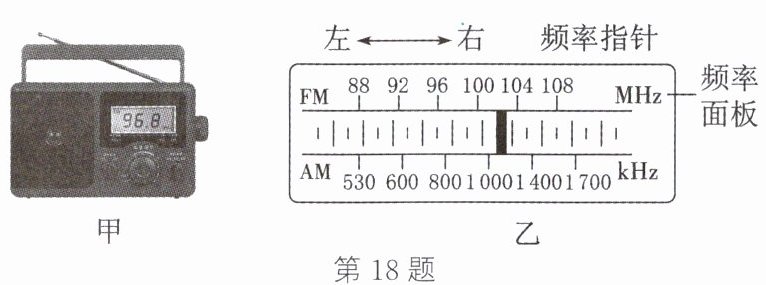 18. 如图甲是一台收音机,在物理课上,老师用导线迅速在干电池两端触碰,可听到收音机发出“嗒嗒”声,下列说法正确的是 (