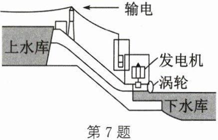 7. 江苏沙河抽水蓄能电站位于江苏溧阳市天目湖镇境内,电站枢纽由上水库、输水系统变电站、下水库等工程组成(如图所示)。当水从上水库倾泻而下时,可驱动发电机转动发电。在此过程中,能量转化的顺序为 (