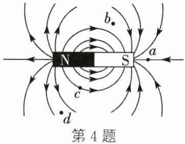 4. 如图所示为条形磁体周围的磁感线分布图,在a、b、c、d四点中,磁场最强的是 (