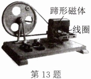 13. 如图所示,观察手摇发电机发电,手摇发电机主要是由