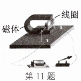 答案:10.(1)铁 (2)磁力 (3)对调磁极(或改变电流方向) (4)电源