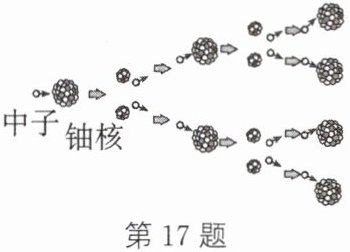 17. 如图所示为用中子轰击铀$-235$原子核产生氪核和钡核的模型,该模型表示的是核