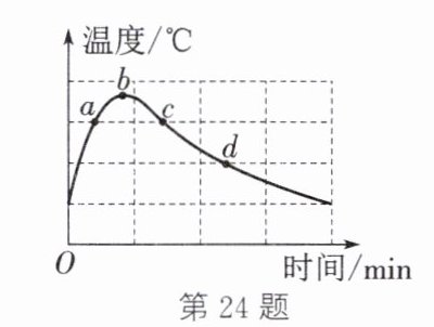 24. 将一定质量的氢氧化钠固体加入一定质量的蒸馏水中,不断搅拌,溶解过程中温度的变化如图。a、c两点对应的溶液中有固体存在,b点时固体全部消失。下列说法错误的是(