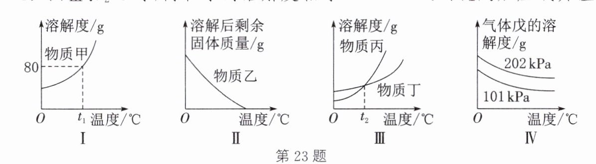 C.图Ⅲ:t₂℃时,丙和丁的溶解度相等