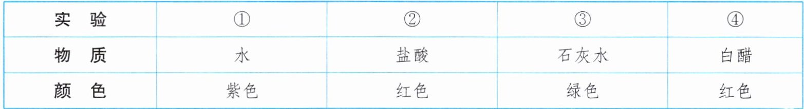 (4)小组同学将紫甘蓝汁液滴入4种物质中,现象如表所示。下列选项能证明紫甘蓝汁液可以作为酸碱指示剂的组合是