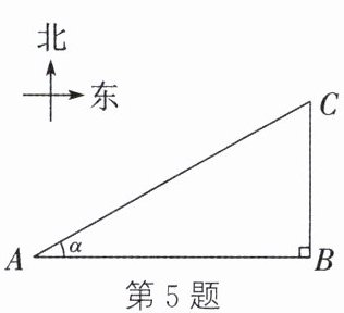 5. 如图,小兵同学从点$A$处出发向正东方向走$x$ $m$到达点$B$处,再向正北方向走到点$C$处.已知$\angle BAC = \alpha$,则$A$,$C$两处相距 (