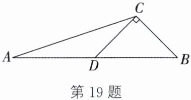19. 如图,在$\bigtriangleup ABC$中,$\tan B = 1$,$BC = 2$,$CD$是边$AB$上的中线,且$CD\perp BC$.求: