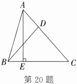 20. 如图,$D$是$\bigtriangleup ABC$边上的一点,$CD = 2AD$,$AE\perp BC$,垂足为$E$,$AE = 9$,$\sin\angle CBD = \frac{3}{4}$.