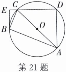 21. 如图,$\odot O$是四边形$ABCD$的外接圆,$AC$是$\odot O$的直径,$BE\perp DC$,交$DC$的延长线于点$E$,$CB$平分$\angle ACE$.
