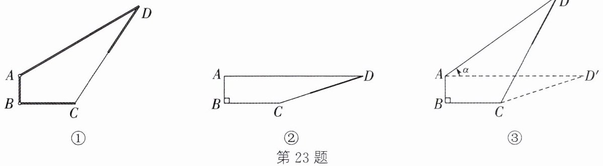 答案:23.(1)如图①,过点C作CE⊥AD,垂足为E.由题意,得AB=CE=10cm,BC=AE=20cm.