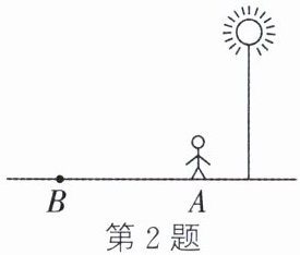 2. 如图,某同学下晚自习后经过一路灯回寝室,他从A处背着灯柱方向走到B处,在这一过程中他在该路灯灯光下的影子