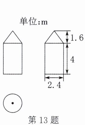 13. 我国某型号运载火箭的整流罩的三视图如图所示,根据图中信息计算该整流罩的侧面积是