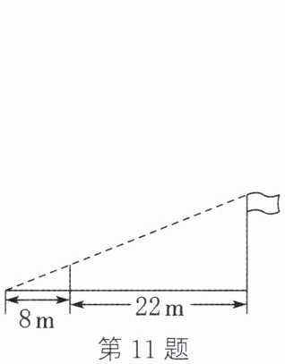11. 如图,为了测量学校旗杆的高度,小东用长为${3.2 m}$的竹竿作为测量工具.移动竹竿,使得竹竿顶端与旗杆顶端的影子恰好落在地面上的同一点,此时竹竿与这一点相距${8 m}$,与旗杆相距$22 m$,则旗杆的高为